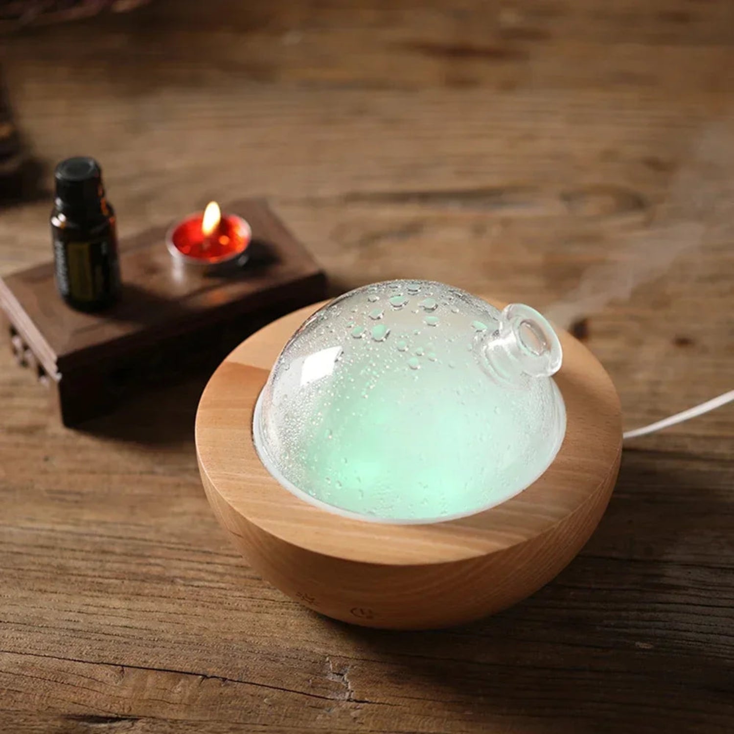 ناشر عطور خشبي بتقنية البلوتوث – سعة 150 مل مع ضباب فائق النعومة وإضاءة LED